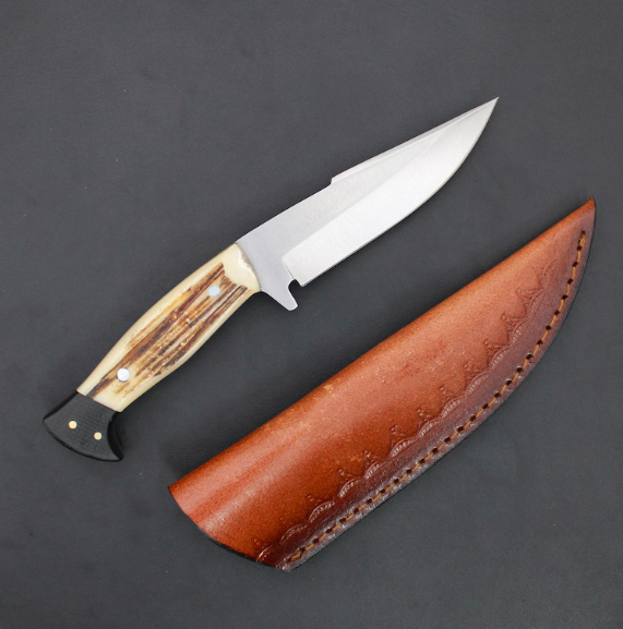 Hunting Knife Handmade Fixed Blade Deer Horn And G10 Micarta Handle Full Tang Outdoor Knife Survival Knife Camping Knife With Lather Sheath It can be used in camping for different types of work you can also use it indoor usage.